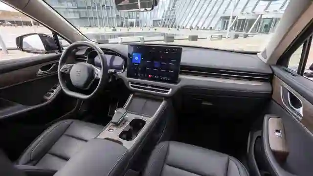 Интерьер — с претензией на премиум, придраться можно разве что к экокоже на сиденьях вместо натуральной. Водительское кресло с электрорегулировками и хорошей боковой поддержкой — самое удобное. Посередине передней панели здоровенный экран-планшет, с которого можно управлять всеми функциями, даже направлением воздушных потоков — заслонки воздуховодов здесь электрифицированы.